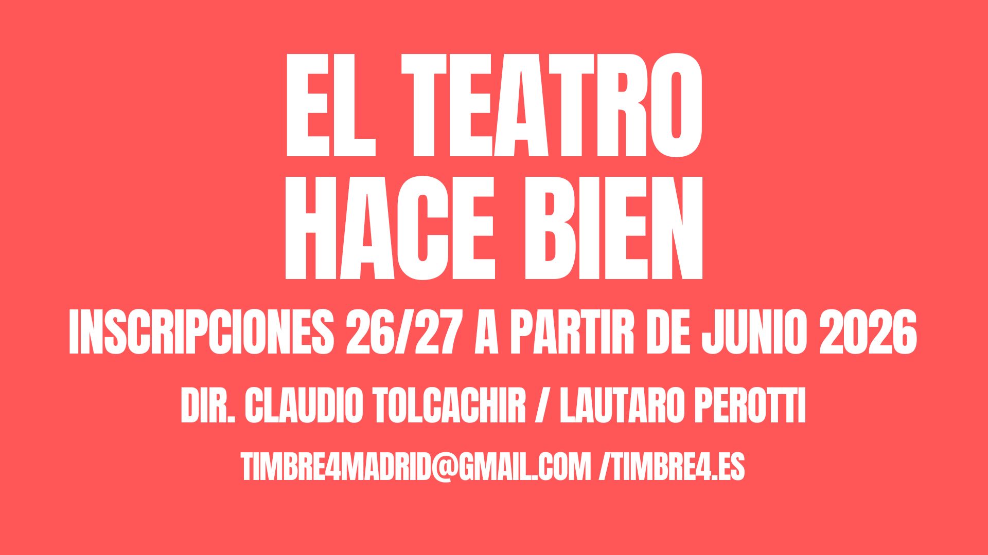 TIMBRe4 también es una escuela, un laboratorio de aprendizaje, tanto para los que inician su camino en la interpretación como para los profesionales que desean incorporar nuevas herramientas y miradas sobre la actuación y la creación.